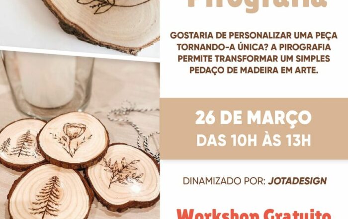 Your Content Goes Here WORKSHOP Pirografia Gostaria de personalizar uma peça tornando-a única? A Pirografia permite transformar um simples pedaço de madeira em arte. Dinamizador: JotaDesign