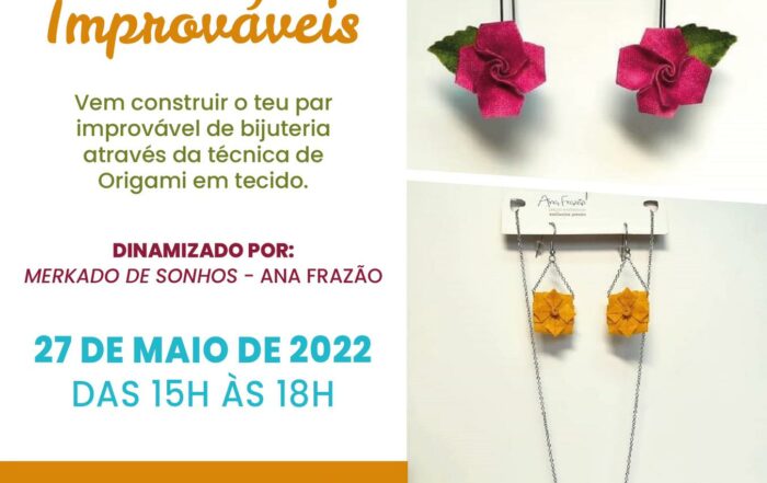 Your Content Goes Here WORKSHOP Pares Improváveis Vem construir o teu par improvável de bijuteria através da técnica de Origami em Tecido. Dinamizadora: Ana Frazão Oficina