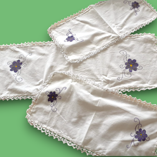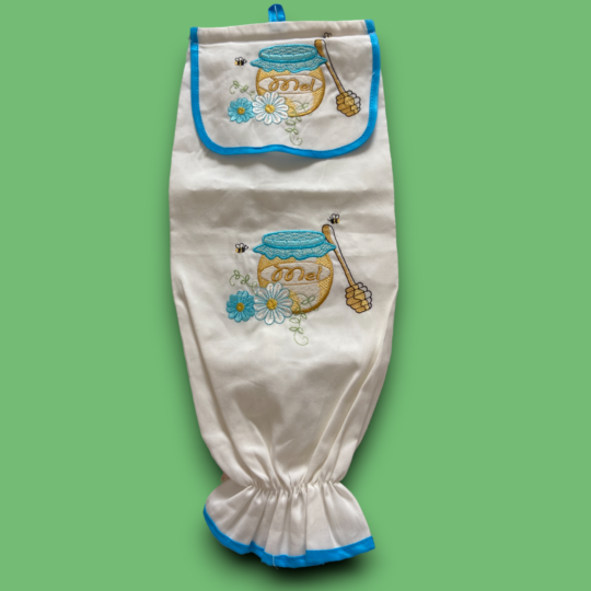 Pano de cozinha pintado à mão com renda feita ao ombro